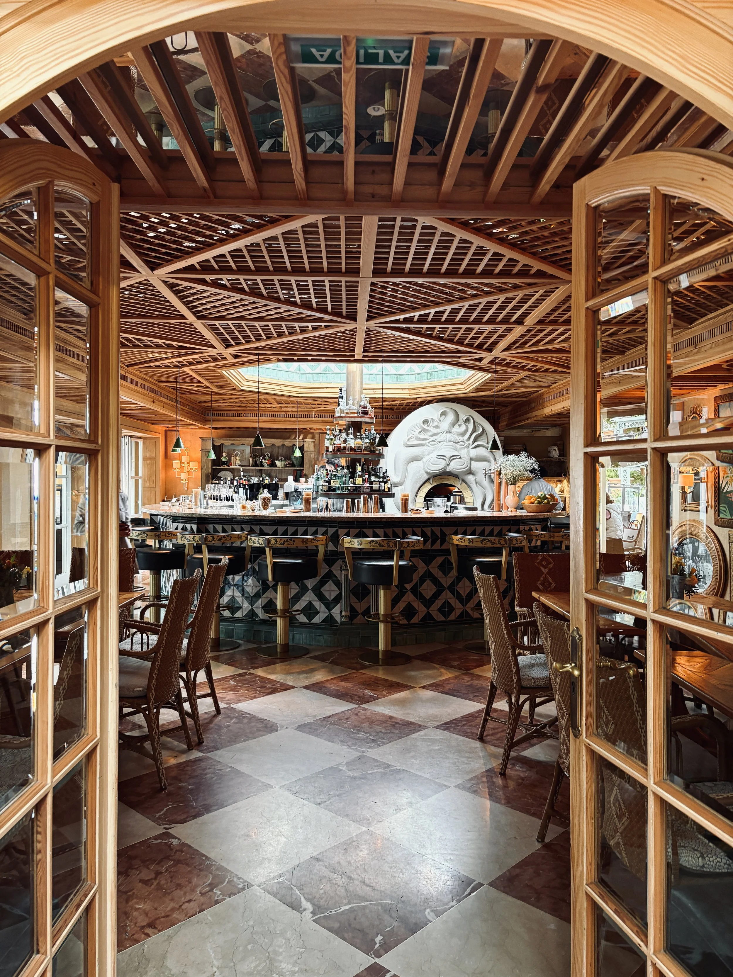 Imagine whitewashed bungalows stretch along a palm-fringed avenue towards the sea, with each corner of the resort offering a different mood - from breezy beachside chic to cosy cocktail lounges and grand, hacienda-style interiors. El Patio, designed by Spanish studio EMCI, nods to retro Californian charm with a bold and playful aesthetic. Black-and-white portraits of past guests like Brigitte Bardot and Cary Grant whisper of golden days gone by, while Schumacher-print wallpaper, hand-painted tiles, and terracotta floors bring warmth and vibrancy to every space.